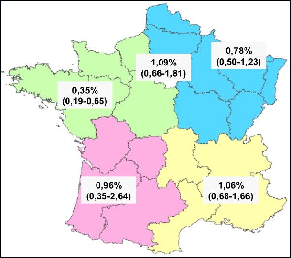 Le taux de prévalence de porteurs des anticorps HVC en France est variable selon les régions (Figure n°2).