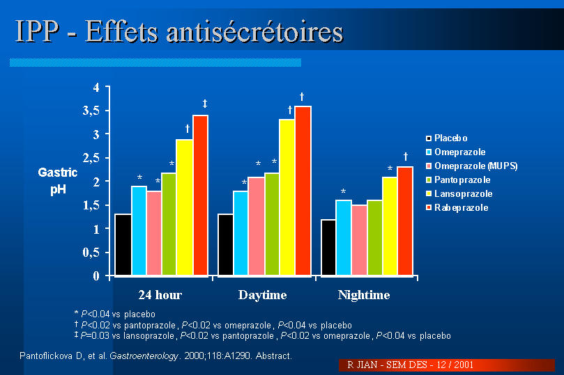 Pantoflickova D, Dorta G, Jornod P, Ravic M, Blum AL. Identification of the characteristics influencing the degree of antisecretory activity of PPIs. Gastroenterology. 2000;118:A1290. Abstract.