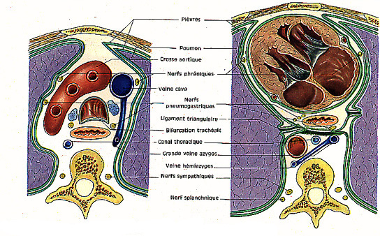 Oesophage - Figure n°6 : Coupe de l'oesophage passant par D4 (gauche) et D8 (droite)