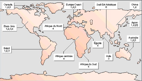 Des différences géographiques sont observées au niveau de la répartition des génotypes du virus de l’hépatite C. Le brassage de ses différents génotypes est dû à l'essor des voyages et des communications ainsi qu'au développement de la toxicomanie, des transfusions sanguines et du commerce des produits sanguins (Figure n°4).