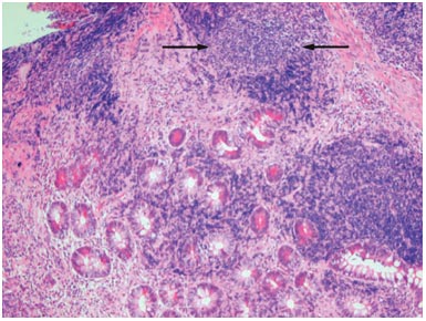 Figure n° 1 : Granulome (Flèches) dans la maladie de Crohn