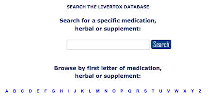 LIVERTOX® fournit des mises à jour, exacts et des informations facilement accessibles sur le diagnostic, la cause, la fréquence, les modèles, et la gestion de l'atteinte hépatique attribuable à prescription et médicaments sans ordonnance, les herbes médicinales et les suppléments alimentaires.