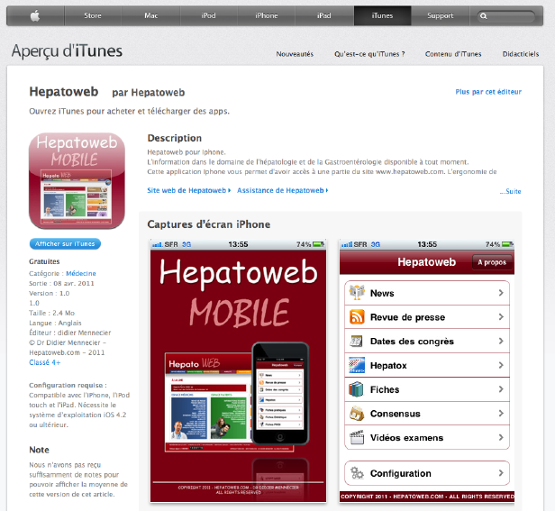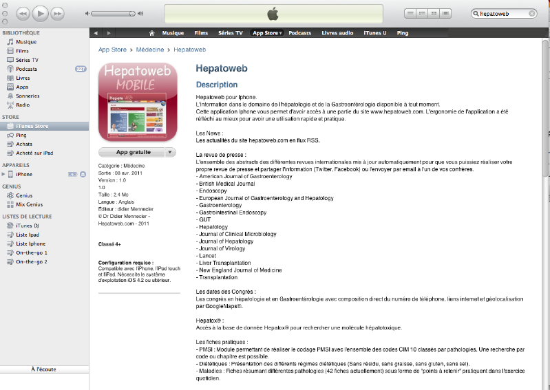 Application Iphone du site Hepatoweb.com