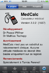 Elle est maintenant payante à 0,79 euros. Il existe une version pro avec une possibilité de garder en mémoire les constantes pour un patients et de les partager avec d'autres confrères