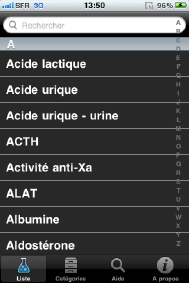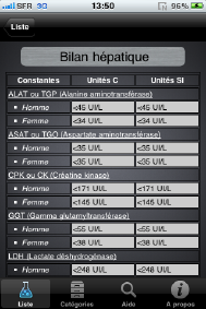Bio est une application qui regroupe les constantes biologiques. Elle permet un accès rapide et simple aux constantes médicales les plus couramment utilisées. Il existe un classement pratique par thématique et un module de recherche très rapide.