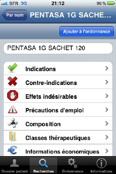 L'application du Vidal possède un module de recherche qui permet d'obtenir un accès très rapide et simple à une molécule, une thérapeutique ou une indication.