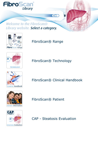 L'application FibroScan® de la société Echosens est une application qui vous permet d'avoir des informations sur le principe de la technologie utilisée et des différentes machines. Elle est essentiellement en Anglais mais il existe des documents en français pour le patient. Elle est gratuite.